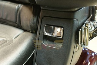 These accents add so much to the look of the bike.  These easy to install small chrome accents go on with self adhesive tape and fit over the rear door pouch latch.  They measure 1” x 2” and are sold in pairs.