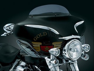 It's no secret - most top designers in any field would concur. The keys to good looks are keeping it simple & highlighting the contours. Regardless of the color or finish, chrome goes with anything & these elemental accents will add depth & character to the time-honored Batwing fairing. No tools needed & no drilling. Simply clean the surface, peel, stick & admire Fits: '96-'09 Electra Glides & Street Glides.