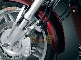 Cover those bare stamped brackets holding your front brake lines to the forks with some blood grooved chrome. These little beauties really make a difference & clean up the lower front fork area. - Plus d'images (2)