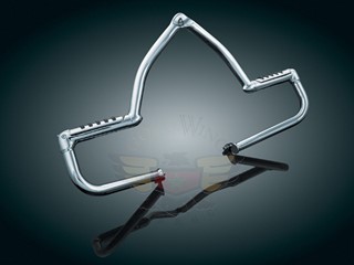 Küryakyn has rewritten the book on engine guards. For years, engine guard designs have changed very little. By incorporating both tubing & investment cast components into our design, we can create shapes & forms & include features not possible with traditional engine guards. Integrated, folding pegs can be used in either the stowed or deployed position. Fits: ’00-’09 FLST Models (Includes shortened replacement brake pedal).7891, Ergo Guard for Softail.