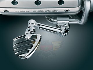 4052 ,Ergo with ISO-Wings (pr) Ergonomically designed for maximum driver comfort, these mounts have an unbelievable range of adjustment for the tall, short or in-between rider. The articulated mounting bracket is made of highly polished stainless steel for extreme strength, great looks & simple installation. The 6" long chrome swing arm has an ingenious locking mechanism & is canted at a 6ยบ angle which angles the pegs just the right amount for ideal comfort.