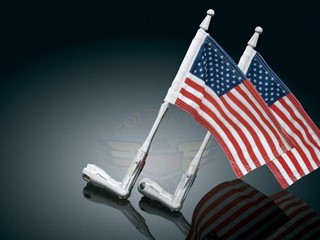 Fly your flag proudly. Highly stylized holder allows you to adjust the angle of the staff without tools. Use the flagpole included in the kit for a blended, one-piece look, or insert your own pole - the tapered holder will secure a 1/4" to 3/8" flagpole. Specifically designed for our billet aluminum luggage rack for GL1800, P/N 7151. Includes American flag (approximate size 4-1/2" x 8-1/2").