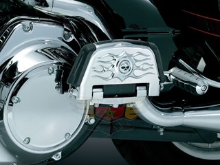 It’ll be hard to beat these cutting edge Passenger Board Covers. Not only do they add an unmistakable look to the passenger boards, but their front edge incorporates a soft bumper to protect your legs when backing out of parking spaces or other tight spots. The Flamed version includes interchangeable Zombie & Maltese Cross Emblems. The Widow Board Covers satisfy the arachnid lover in all of us. Fits: ’86-’09 Electra Glides, Road Glides, Tour Glides, Road Kings, & ’86-’09 Softails with traditional passenger boards