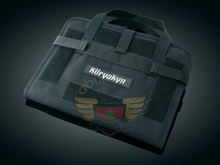 for H-D Tour-PakĀ®:Is your Tour-Pak beginning to resemble the "junk drawer" in the kitchen? At least keep important or fragile items at your fingertips with the Lid Organizer Bag. A variety of padded and see through mesh compartments offer protection and easy accessibility for frequently used items. Who says you can't take it with you? Quick disconnect hook and loop and handles make it easily portable.Included Items: Lid Organizer Bag, Hook & Loop Mounting Strips, 5" x 7" Mirror.Dim: 13" x 20" (open).