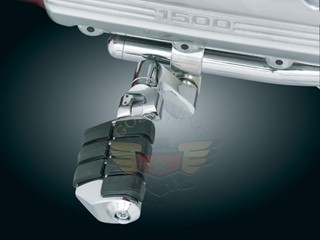 These highway pegs utilize our unique offset mount to allow riders a range of adjustment not possible with other clamp-on style highway pegs. The offset can be rotated 360ยบ in a 4" diameter circle to accommodate tall, short, or average height riders. These can be installed on any round tubing (frames or engine guards), but it is important to keep in mind that the footpeg itself will end up perpendicular to the bar to which it is mounted.