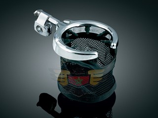 There's nothing better than a hot cup coffee on a cold morning or an ice-cold bottle of water on a hot summer day. Kuryakyn Passenger Drink Holders fasten securely to the passenger grab rails on H-D Touring Models.Two styles are available, a mounting ring with stainless mug or a basket that will hold just about any can, bottle or cup. The clamp fastens securely to the 1/2" diameter passenger grab rails found on Electra Glides & Tour Glides or can be mounted universally on any 1/2", 5/8", or 3/4" tubing.