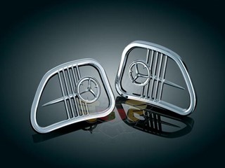 Plain black mesh speaker covers were pretty boring until now! Our new Speaker Grills install in minutes & bring the stock covers to life, while giving you the opportunity to add your own personalized touch. The round Three Spoke Insert can easily be substituted with our Chauvinist (P/N 3784), Illiana (P/N 3768), or Twin Ring (P/N 3785) 2” Gauge Bezels (sold separately - pg 104). Fits: ‘98-’09 Road Glides.