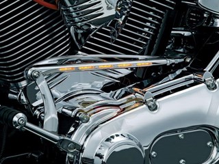 The Train Rod's sleek shape is reminiscent of the streamlined trains of the 30's and 40's while its integrated amber L.E.D.'s are right out of the 21st Century. Installs quickly and is easily wired into the bike's run circuit.