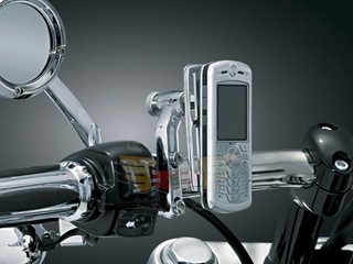 Universal handlebar accessory mounts Attach your cell phone, MP3 player & almost any portable device directly to your handlebars using this mount. The quick detach mounting plate leaves a simple clamp when it is not in use.Standard 4-hole AMPS pattern, includes hook-&-loop straps, accepts most belt clips fits: ‘82-’08 H-D Model Clutch or Brake Perch Mounts