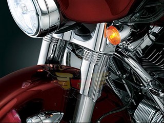 You’d be amazed at the amount of time, materials & labor required to simply replace the stock stainless fork slider covers with chrome ones. Our new Upper Fork Slider Covers provide the same shimmering chrome finish, but install in only minutes over the stock covers - no need to disassemble the front end! Want to really look sharp? Use these along with our Chrome Lower Leg Accents (P/N 8630 or 8631).