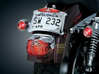 More evil per mile! The Widow Taillight Cover features a chrome 3-D Widow figure creeping across the taillight lens. In daylight it sparkles in the sun, in darkness an ominous silhouette is cast. Get caught up in the Widow’s web & add this venomous taillight cover to your collection of Widow themed accessories.Fits: ’73-’09 H-D Models without bobbed rear fenders (except ’97-’03 FLSTS, ’05-’07 FLSTSC, ’05-’09 FLSTN, ’00-’07 FXSTD, ’02-’09 V-Rod, ’08-’09 Rocker, ’09 FXDB)