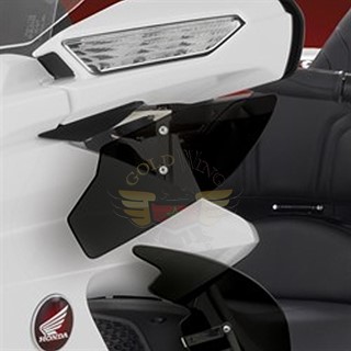 A true motorcycle accessory not only must do what it was designed to do, but it needs to look good while doing it. The old adage Form Follows Function, is a constant design practice at Big Bike Parts®, and this cannot be more evident than in their most recent Wind Deflectors for the GL1800. A true Wind Deflector will deflect as much weather away from the rider pocket as possible while still allowing the ability to bring air into the riding pocket at various angles for comfort. These Show Chrome Accessories® Upper and Lower Wind Deflectors do all of this very well. The 3 ¾” x 9 ¾” upper deflector panel mounts below the mirror with a custom pivot bracket allowing 125° of rotation and allows the mirror to fully fold without interfering with the wind deflector. The lower deflector is a functional 4 ½” x 16 ½” tall panel providing great adjustability by the rider with 110° of rotation, unlike the fixed OEM version. Both are dark smoke and easy to install with only 2 mounting holes per panel.UPPER WIND DEFLECTOR KIT, Dark Smoke, For GL1800 Goldwing 2018- Newer, 125° of Rotation, UPC: 725378979573