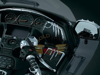 Chromes pour les grilles de haut-parleurs avants. Pose facile par adhésif.Vendus par paire.Pour Goldwing GL 1800 modèles à partir de 2006.