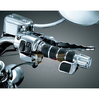 Few things can take the enjoyment out of a great ride like, numb, tingling fingers. Kuryakyn Grips are an excellent first step to keep vibration in check, but now you can improve their legendary comfort even more! Grip End Weights quickly install on the end of each Grip adding mass & length to further reduce high amplitude handlebar vibration. Their sculpted appearance & bright chrome finish.Fits: All Küryakyn ISO-Grips, ISO-Flame Grips, & Transformer Grips.GoldWing: All Küryakyn ISO-Grips (ISO-Grips for use with GL1800 Heated Grips (P/N 6183) requires Smooth Accent Rings for proper installation - Plus d'images (2)