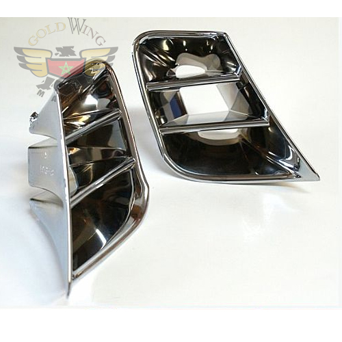 This is a pair of new style scuff cover inserts. These chrome plated ABS plastic inserts are made by Add-On and are designed to fit into the openings in the original black saddlebag scuff covers. They easily snap in place in seconds and add a nice touch to the side of the bike. These will fit all Goldwing GL1800's from 2012-2013.