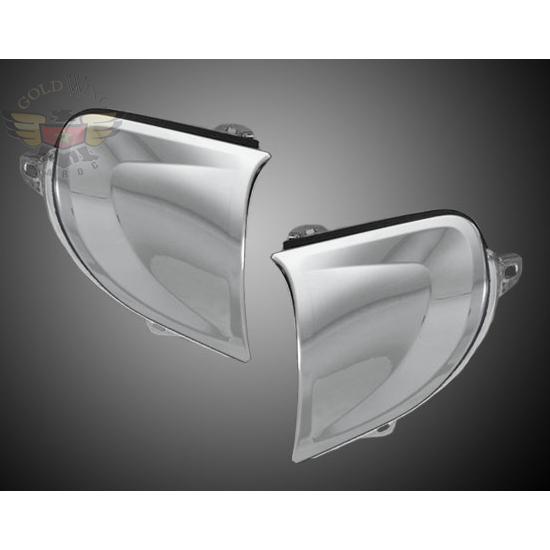 Big Bike Parts apporte le chrome à votre Garniture de fin de phare sur la Goldwing 2012. Le Goldwing 2012 perdu beaucoup de son chrome dans ce que nous croyons étaient des mesures de réduction des coûts. Big Bike Parts sera le ramener en 2012 sur divers nouveaux accessoires pour la Goldwing. La garniture Fin des phares est une telle partie. Cette paire de garnitures de chrome remplace le plastique mat noir texturé à la fin des phares. Il monte dans l'espace existant et apporte instantanément la vie à la bulle. La garniture de fin de phare s'adapte 2001-12 GL1800 Goldwing.